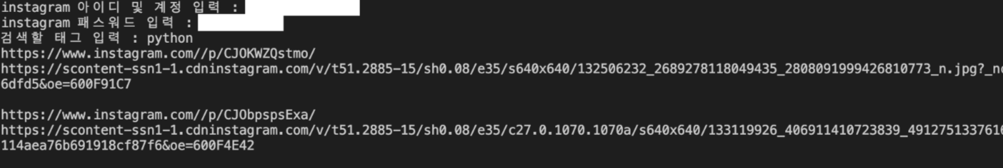 파이썬 기본 문법 활용으로 인스타그램 크롤링을 해보았다.