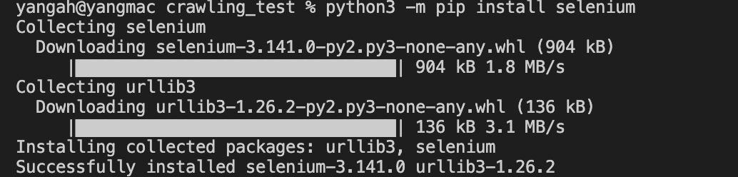 - 맥, 리눅스 >> python3 -m pip install selenium