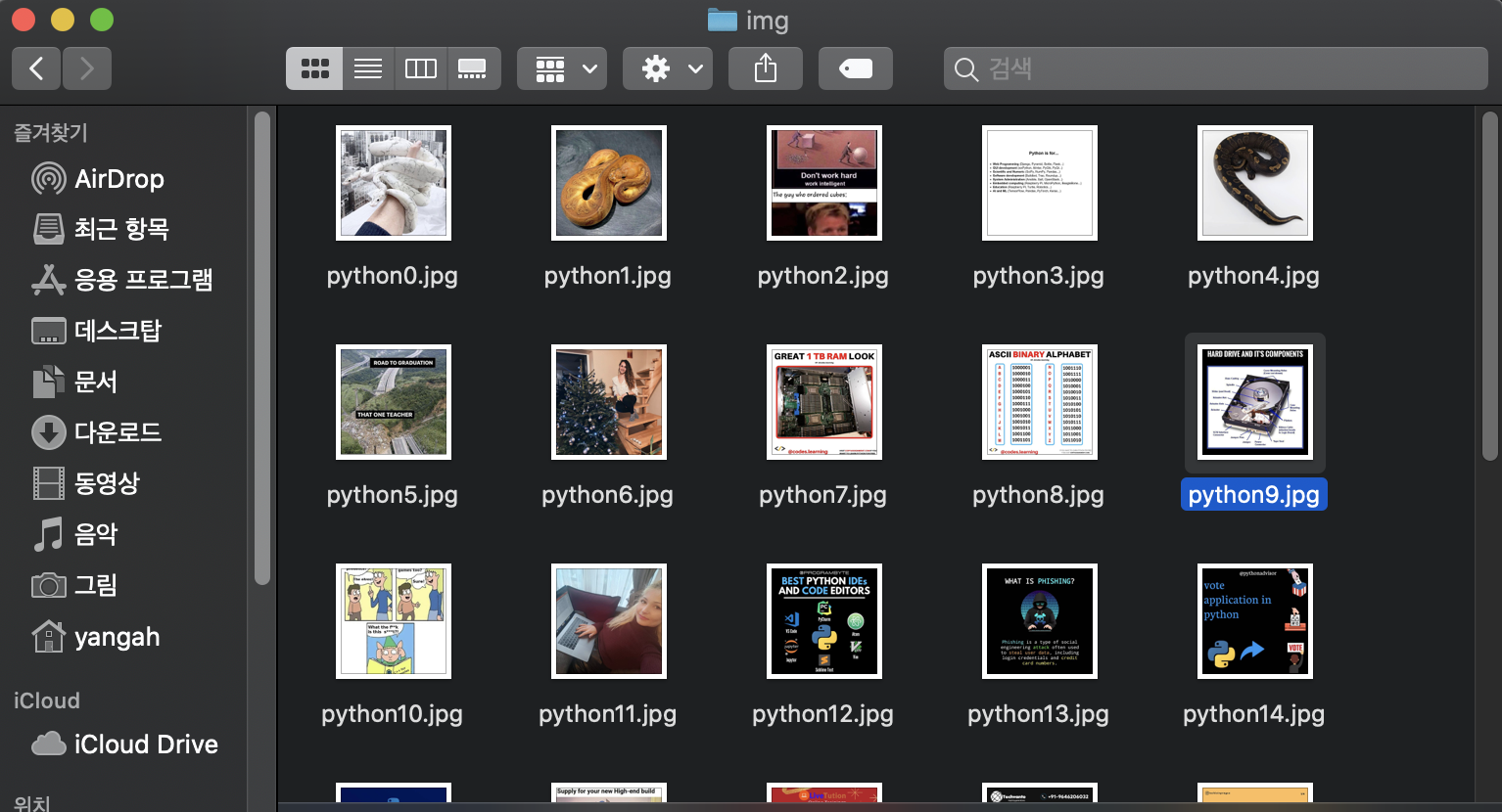 이미지를 다운받은 폴더에 가면 32개의 이미지들이 저장되어있는것을 확인할 수 있습니다.