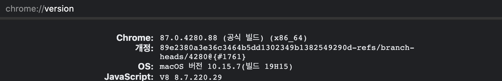 chrome://version/ 에서 내 chrome의 현재 버전을 확인하실 수 있습니다.