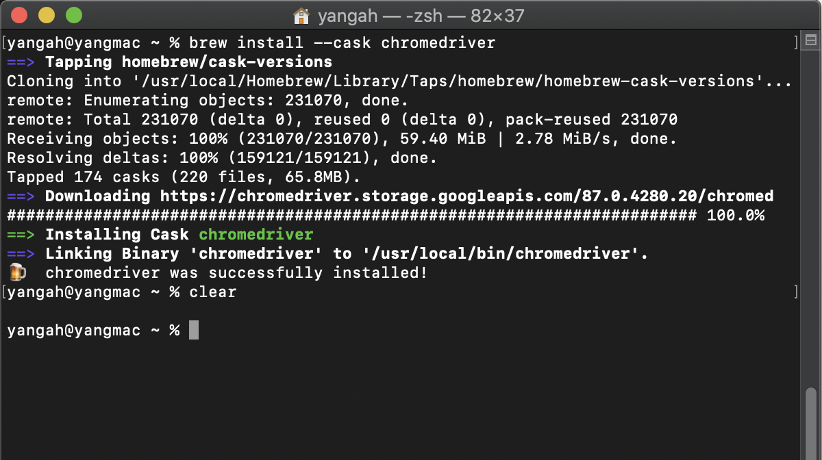 인터넷 브라우저를 제어할 수 있는 드라이버가 필요합니다. 저는 Chrome을 사용할 것이기 때문에 chromedriver를 설치했습니다.