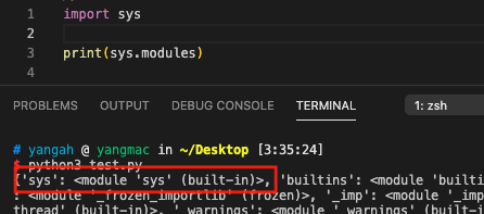sys.modules를 출력해보면 sys가 built-in 되어 있음을 볼 수 있고 따라서 sys는 bulit-in modules에서 찾을 수 있다.