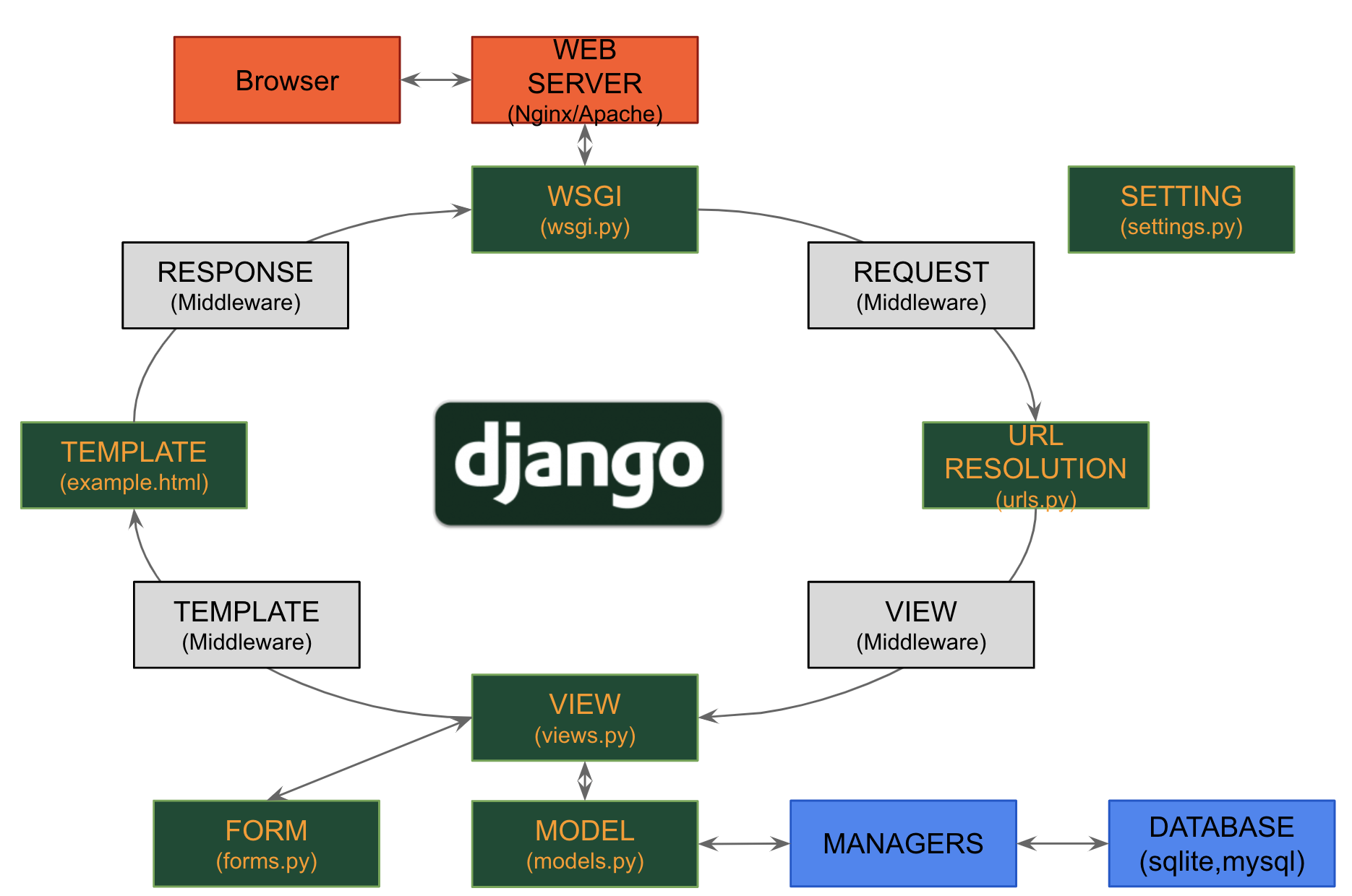 전반적인 flow는 아래와 같다. (django 웹 프로젝트가 구동되는 방식)