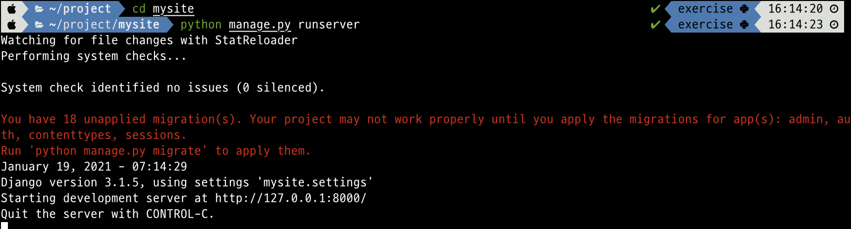 mysite/ : 이 디렉토리 내부에는 프로젝트를 위한 실제 파이썬 패키지들이 저장된다. mysite.urls와 같은 방법으로 이 프로젝트 어디에서나 파이썬 패키지들을 import 할 수 있다.