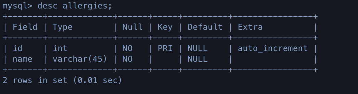 - allergies 테이블