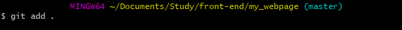git add . 명령어로 해당 로컬 디렉토리 안에 있는 모든 파일들을 stage에 올립니다.
