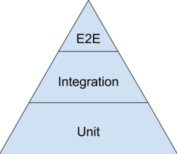 각 테스트 비중은 E2E - 10%, Integrating - 20%, Unit - 70%로 구현하는 것을 권장한다.