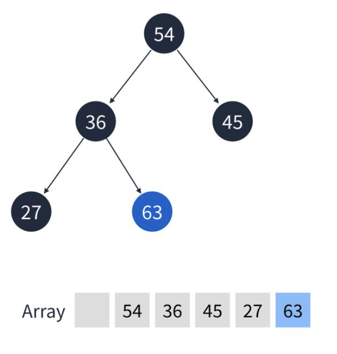 2. 63이 제거되면 가장 마지막 정점인 36이 루트에 위치하게됩니다.