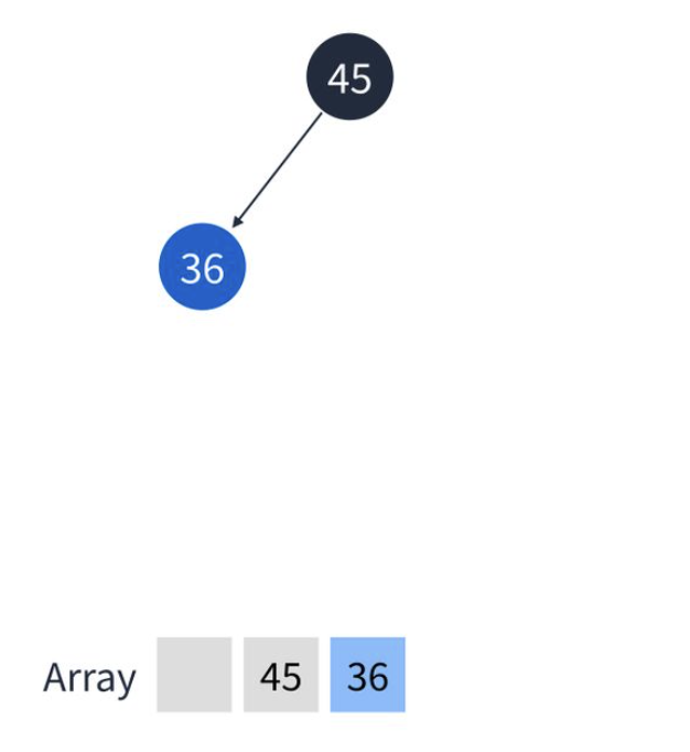 2. 36 요소를 추가. 이진트리이므로 루트의 왼쪽에 추가된다.